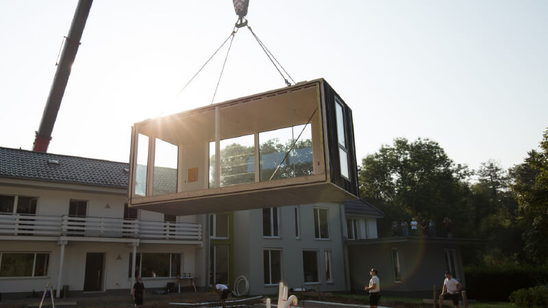 ■ Gebäude aus komplett vorgefertigten Einzelmodulen